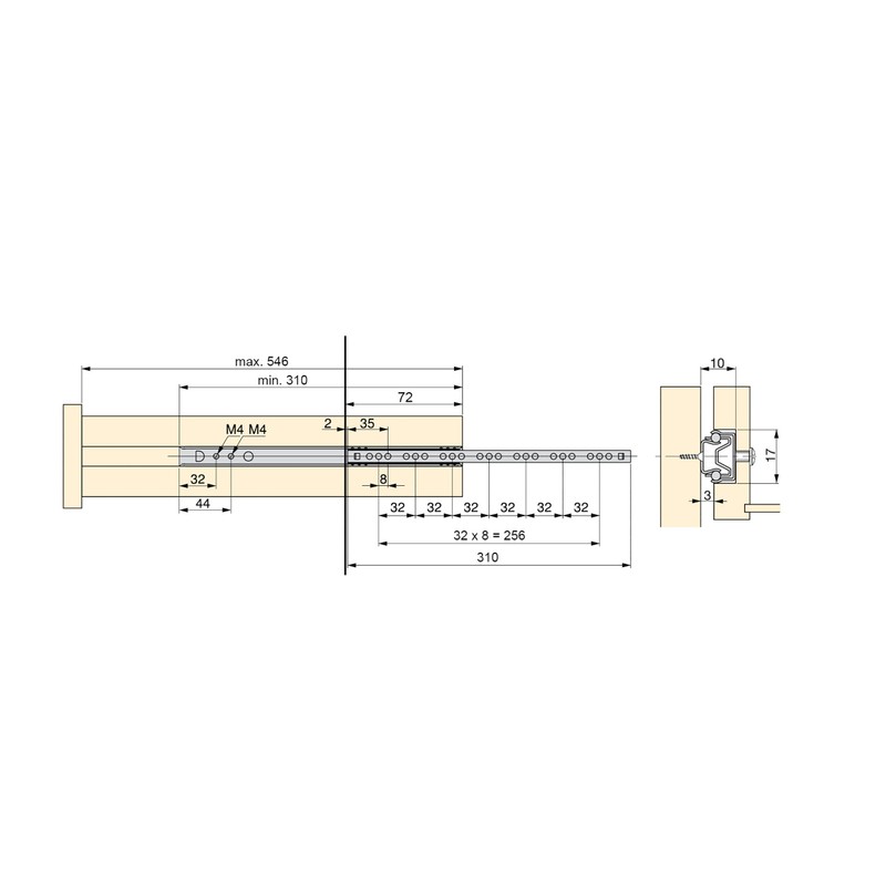 - Suitable for drawers with a 17 mm lateral groove and with depth between 310-546mm.