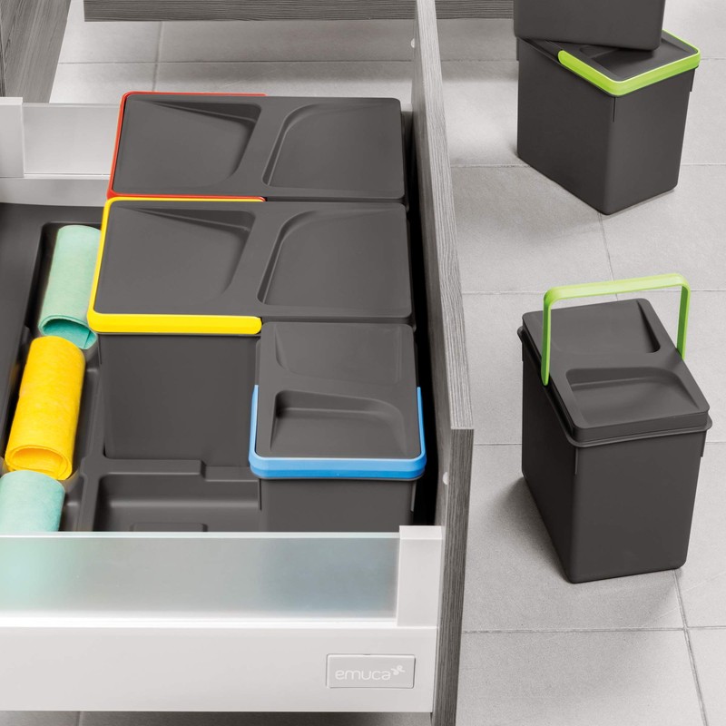 Emuca, waste sorting cut-out base, bin height 266mm with 15 litres capacity, Grey, H 266 mm (1x15L)