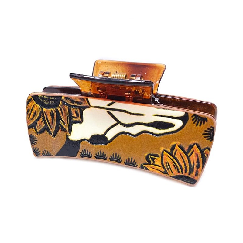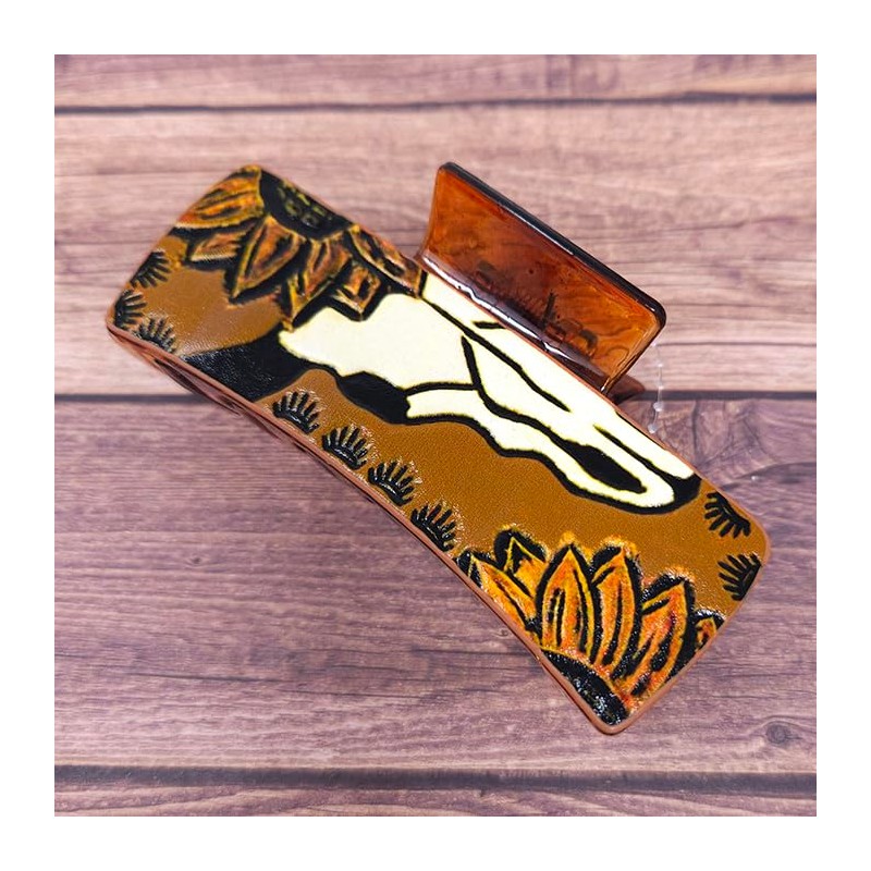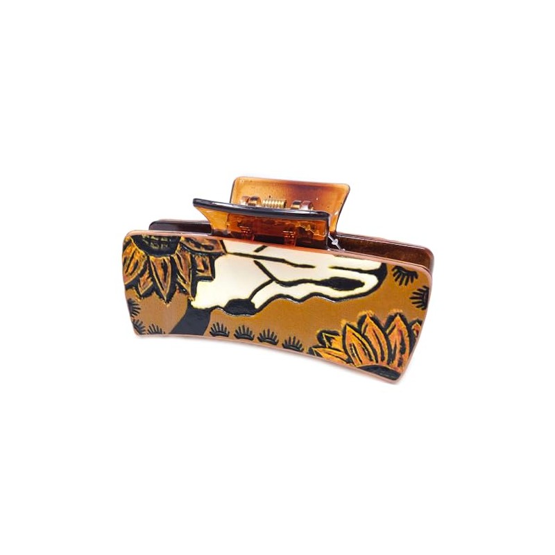 Emulily Western Tooled Steer Head 3.25 "Hair Claw Clips Navajo Boho