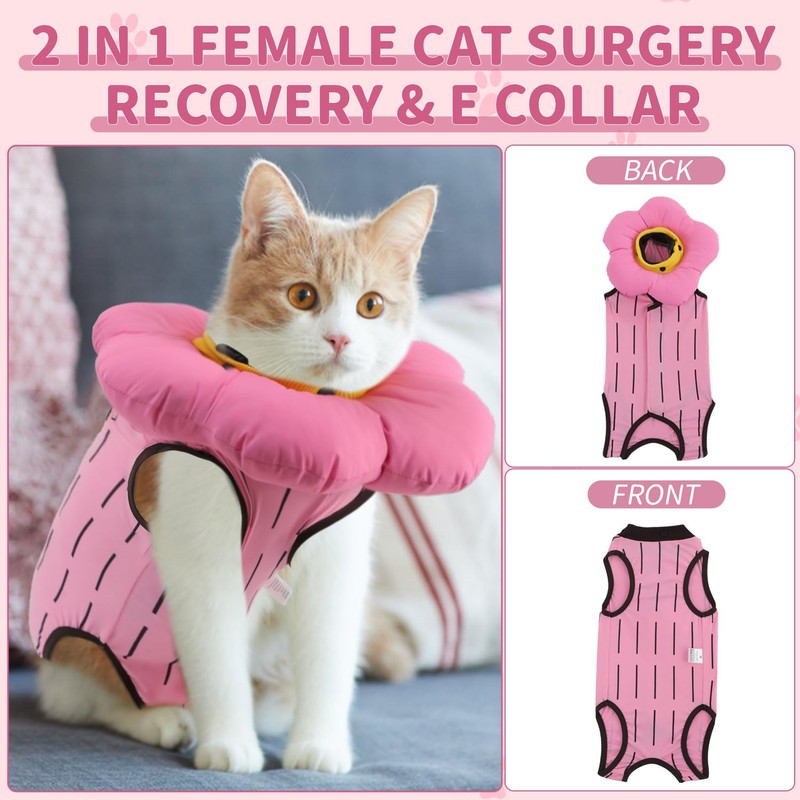 - 【Widely Used】Whether it's post-op, weaning, skin disease or spaying, our professional cat surgery recovery suit and e collar are suitable for a variety of scenarios. Wearing it not only protects your pet's abdominal wounds from licking and reduces the risk of infection, but also increases their mobility, reduces stress and helps them recover faster.