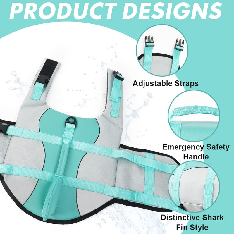- STYLISH & EYE-CATCHING DESIGN: The pet floating jacket is out with fashion colors and imitates shark shape and attract person's attention, make your dog to be the focus at pool, beach, or boating with you.