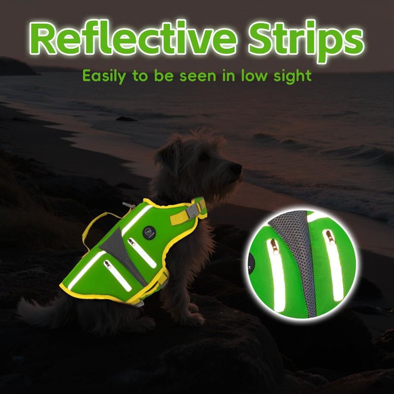 - 【High Visibility Dog Safety Vest】The dog safety vest with 2 bright colors and reflective strips can help you better notice your dog's position. And the dog flotation device is perfect for all kinds of water activities, such as boating, kayaking or maybe even just to a pool party.