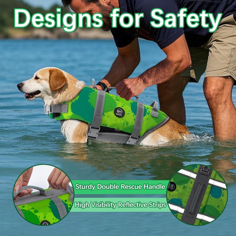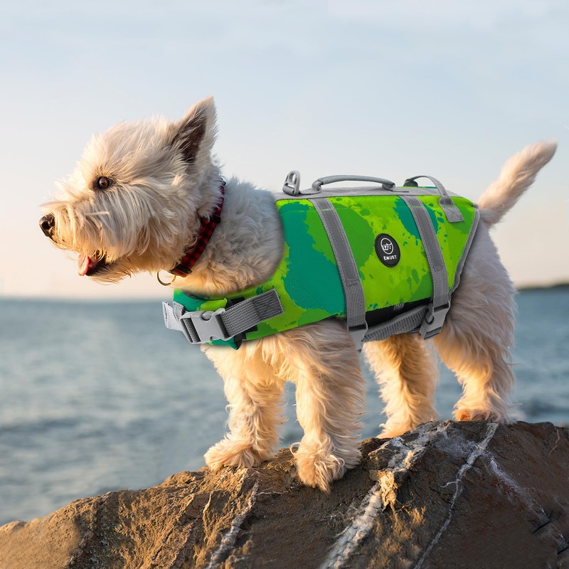 EMUST Dog Life Vests, Adjustable Pet Life Jacket with Rescue Handle, Dog Flotation Device DFD for Small/Medium/Large Dogs, M, MultiGreen