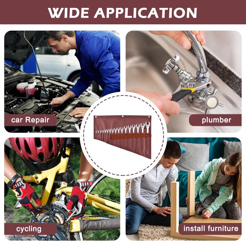 【16 TOOL SLOTS】This strong and lightweight wrench roll with 16 tool slots, you can store a variety of small to medium sized hand tools, well built for different types tool accesorries.