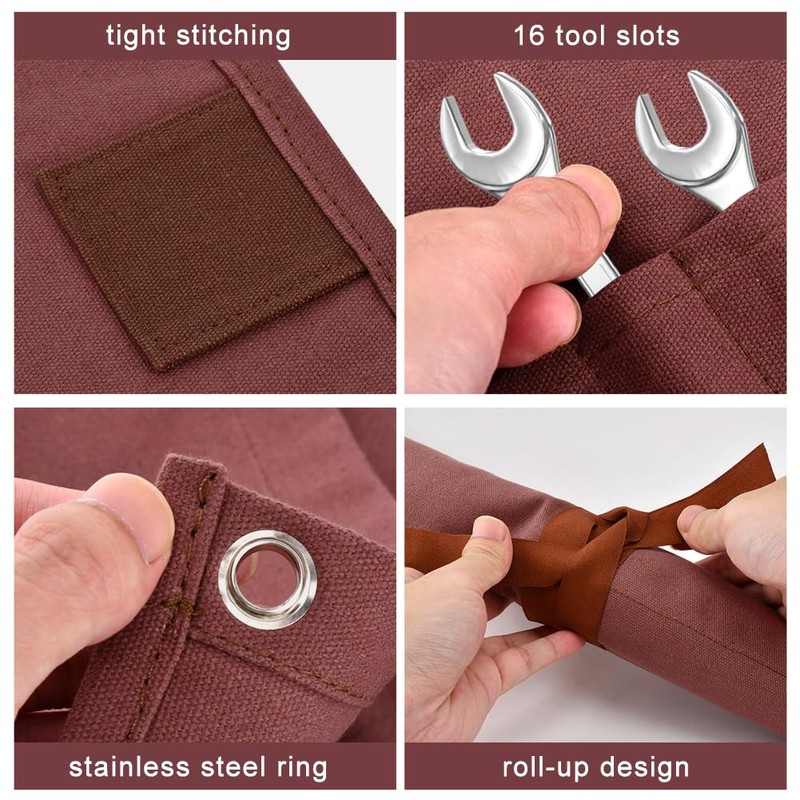 EMVANV 16 Pockets Wrench Roll Organizer, Roll Up Tool Bag, Multi-Purpose Wrench Roll Pouch with Strap, Portable Pouch Storage for Craftsmen Handmade