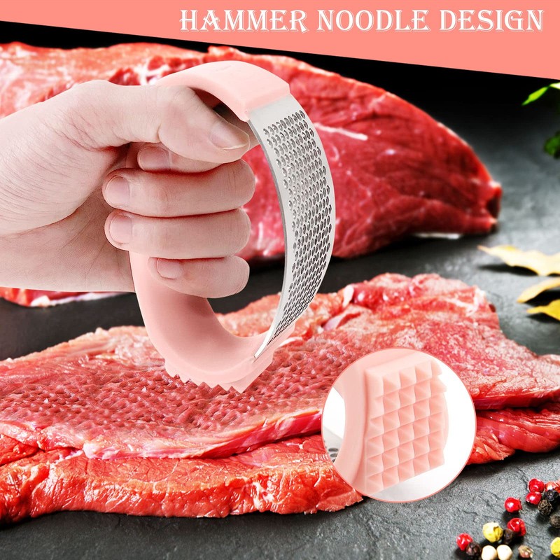 - The Emwel 2-in-1 multifunctional garlic press has a stylish black surface with hammer nail surface that can be used as a meat tenderizer.