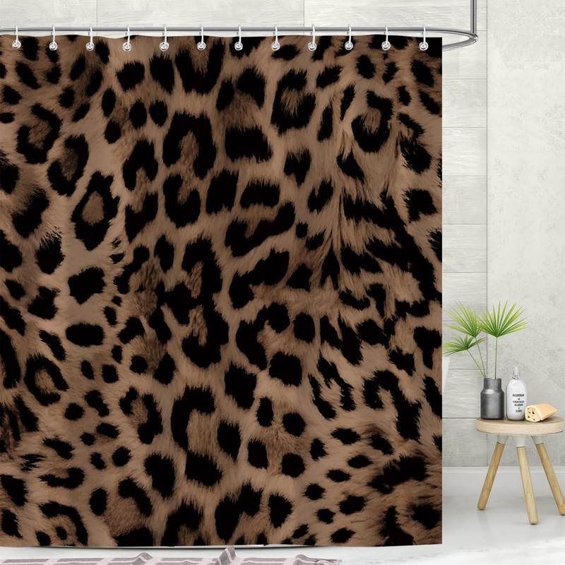 Emwnodti Sexy Leopard Print Shower Curtain,Wild Animal Cheetah Print Brown Black Fur Bathroom Accessory Set,Polyester Fabric Waterproof Bath Curtain 72x72 Inch with 12 Hooks