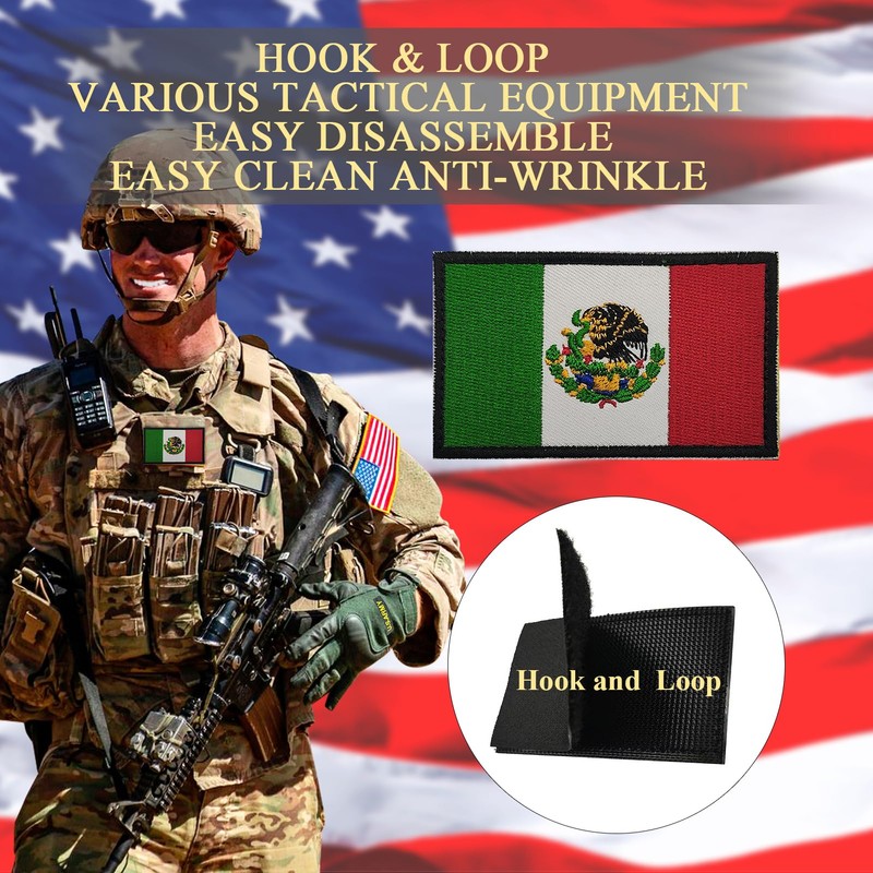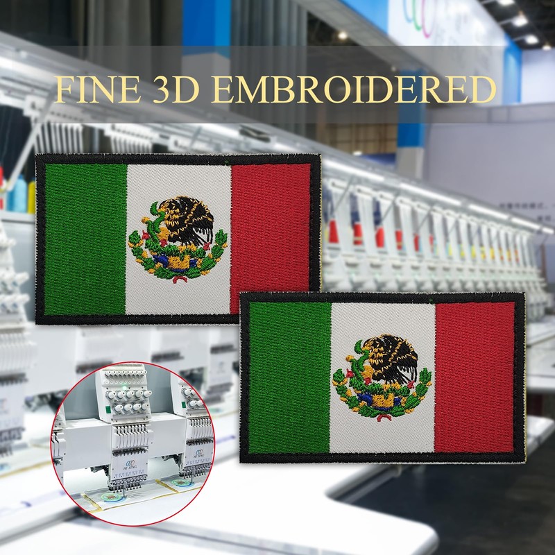 - 2 PCS Mexican Flag Patches,Embroidered,Size:3×2 inches (8×5 cm),Hook and Loop,Comes with a Loop Tape of the same size;