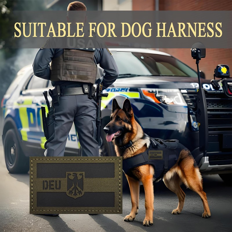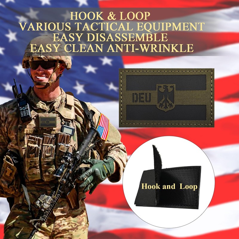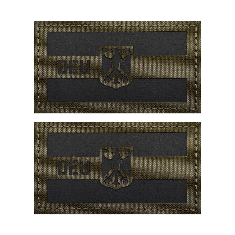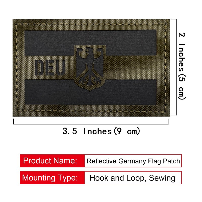 - 2PCS German Flag Patches,IR Infrared Reflective Patch,Army Green,Size:3.5×2 inches(9×5 cm),Comes with a Loop Tape of the same size;