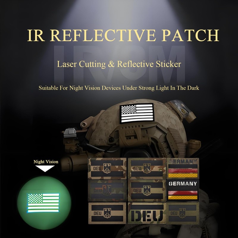 - German Flag Patch Germany IR Infrared Reflective Patches, Laser cut and reflective patches for easy identify at night,The infrared shooting distance needs to be more than 1 meter, and the higher the infrared level, the brighter it is;