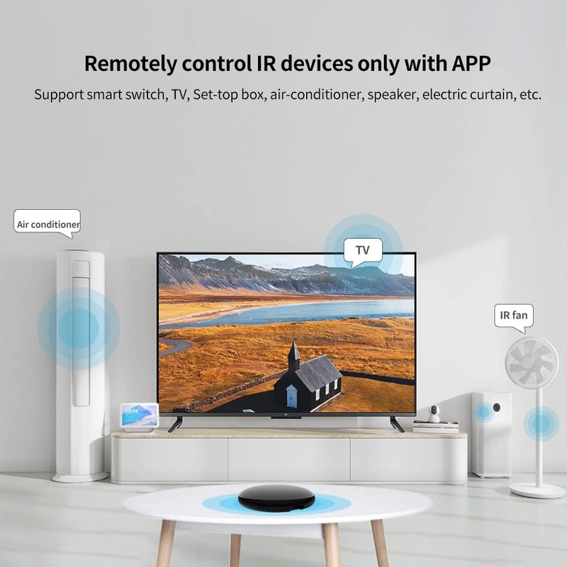 - Intelligent DIY connection: with easy operation in the app, you will have a different intelligent experience for the WiFi IR controller. If the environmental conditions change, you can perform intelligent linking. For example, if the room temperature exceeds 30 °C, the air conditioner will automatically open, or if the humidity is lower than 20% RH, the humidifier will automatically open, making you feel comfortable at any time