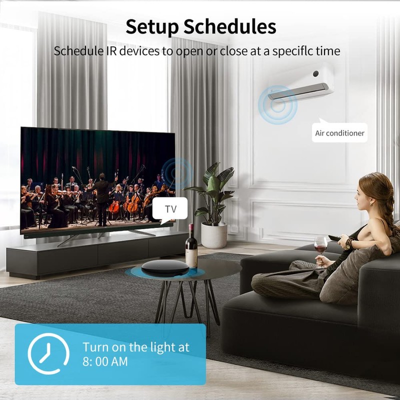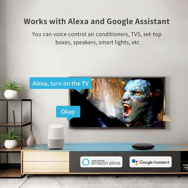 - Voice control: WiFi IR remote control and temperature and humidity sensor support Alexa, Google Assistant, you can use air conditioning, TV, set-top box, fan, speaker, intelligent light, etc. such as "Alexa turn on the TV"; "Set the temperature of the air conditioner to 20 degrees