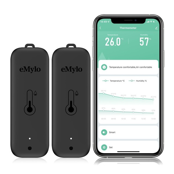 eMylo WiFi Thermometer Hygrometer Indoor Black Pack of 2