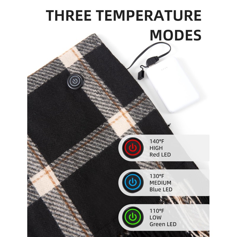 - Customizable Heat Settings: This heated scarf with three adjustable heat levels. You can easily select the perfect level of warmth to match the weather and your personal comfort needs.