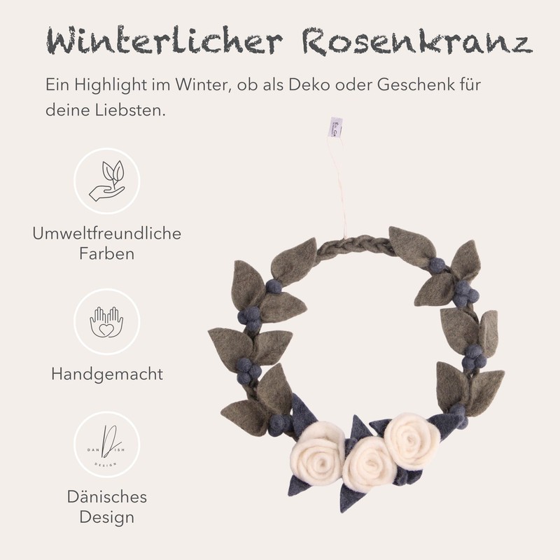 Én Gry & Sif Door Wreath in Scandi Style with White Roses, Handmade from Felt, Fair Trade, Wreath for Hanging as Christmas Decoration, Diameter 20 cm, Multicoloured (18321