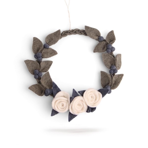 Én Gry & Sif Door Wreath in Scandi Style with White Roses, Handmade from Felt, Fair Trade, Wreath for Hanging as Christmas Decoration, Diameter 20 cm, Multicoloured (18321