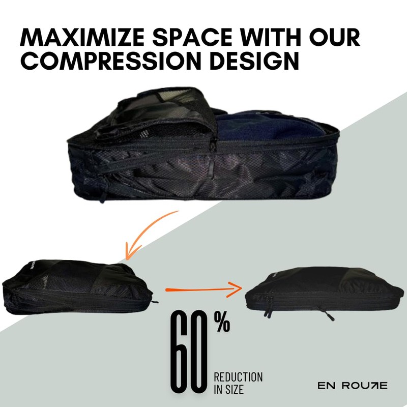 En Route CompactPro 6-Piece Black Compression Packing Cubes for Travel – Ultralight, Expandable, Waterproof & Odourless – Perfect for Suitcases & Backpacks – Organized Travel Packing Solution