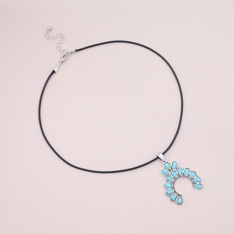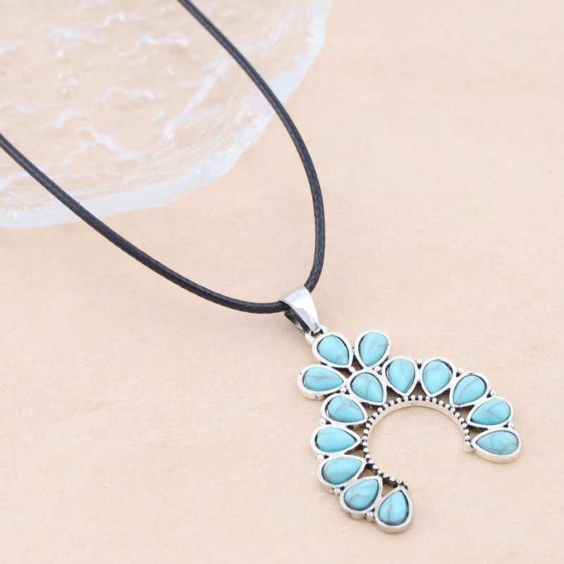 - Leder Türkis Halskette aus hochwertiger Legierung und Leder Seil, stilvoll und elegant zeitlosen klassischen Stil
