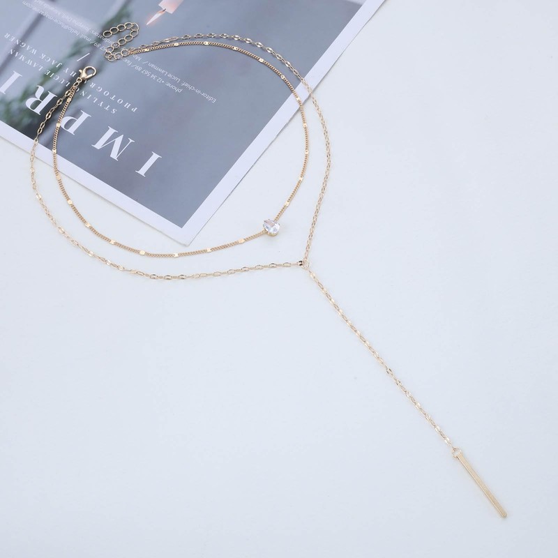 - Layered gold crystal Y necklace made of high quality alloy and rhinestone,stylish and elegant timeless classic style