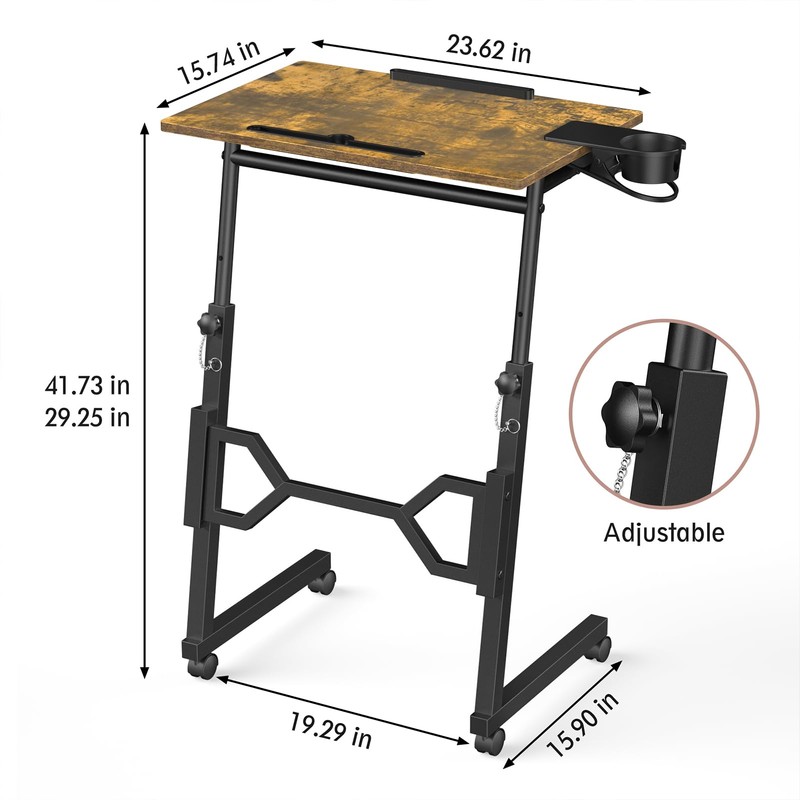 - Portable Desk on Wheels: Tall desk adjustable height 27.25 inch-41.73 inch for you to sit or stand, 23.62 inch x 15.74 inch desktop for more storage space, smooth 360 degree rotation wheels make desk move wherever you want
