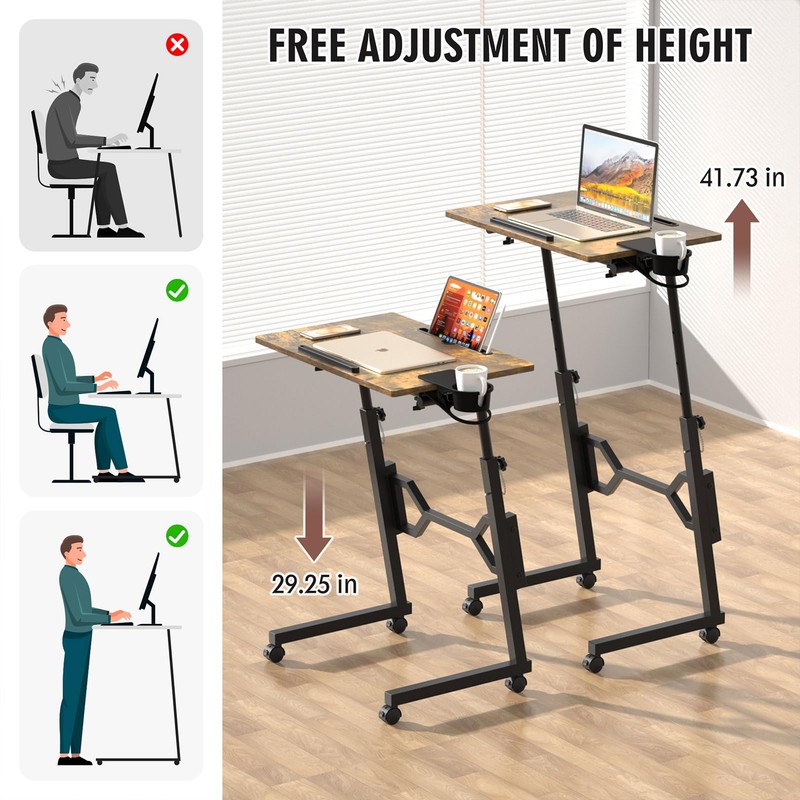 - Ergonomics Rolling Table: Adjustable height 29.25 inch-41.73 inch for you to sit or stand, Its ergonomic design helps improve posture and reduces discomfort in your back and neck, allowing for a healthier and more comfortable work experience
