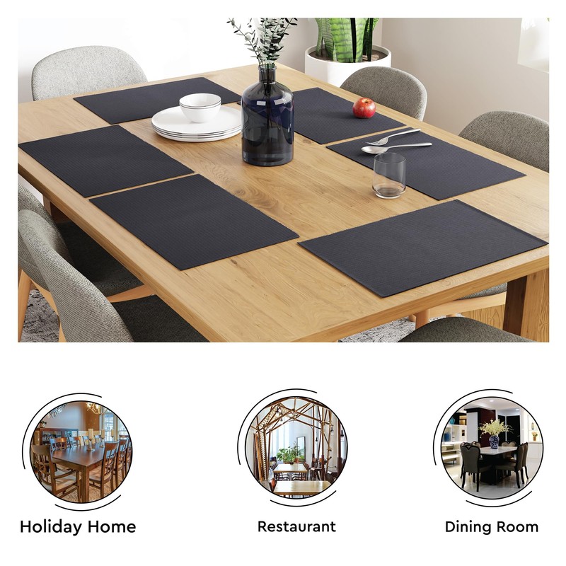 Encasa Homes Dining Placemats (Set of 6 pcs) Made from Fine Ribbed Cotton - Perfect Size 19 x 13 inch, Smart Modern Colours & Designs, Use at Home, Cafes, Restaurants & Hotels - Solid Grey