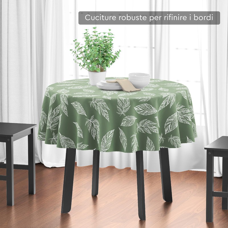 Encasa Homes Printed Tablecloth 145 cm Round for 4 Seater Dining Table, 100% Cotton, Machine Washable, Durable, Rectangular, for Home, Restaurant, Banquet - Big Leaves Green