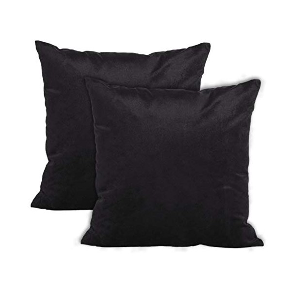 Encasa Homes Velvet Throw Pillow Cushion Cover 2 pcs Set - Black - 18 x 18 inch / 45 x 45 cm Solid Plain Dyed Soft & Smooth, Made in India, Square Accent Decorative Pillowcase for Couch, Chair,Bed