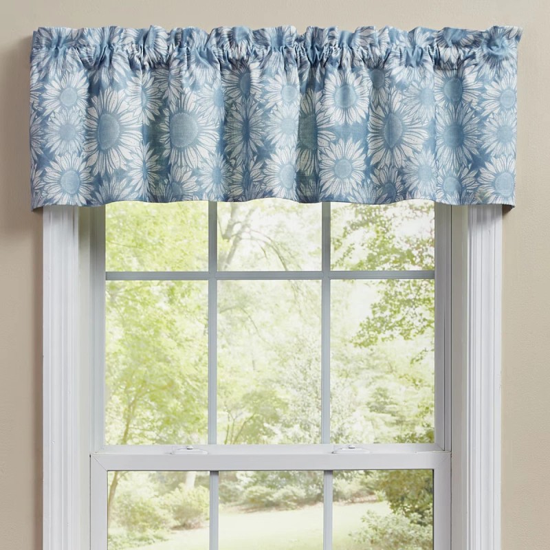 Enchanted Farmhouse Flower Window Valance Blue White 60" x 14"