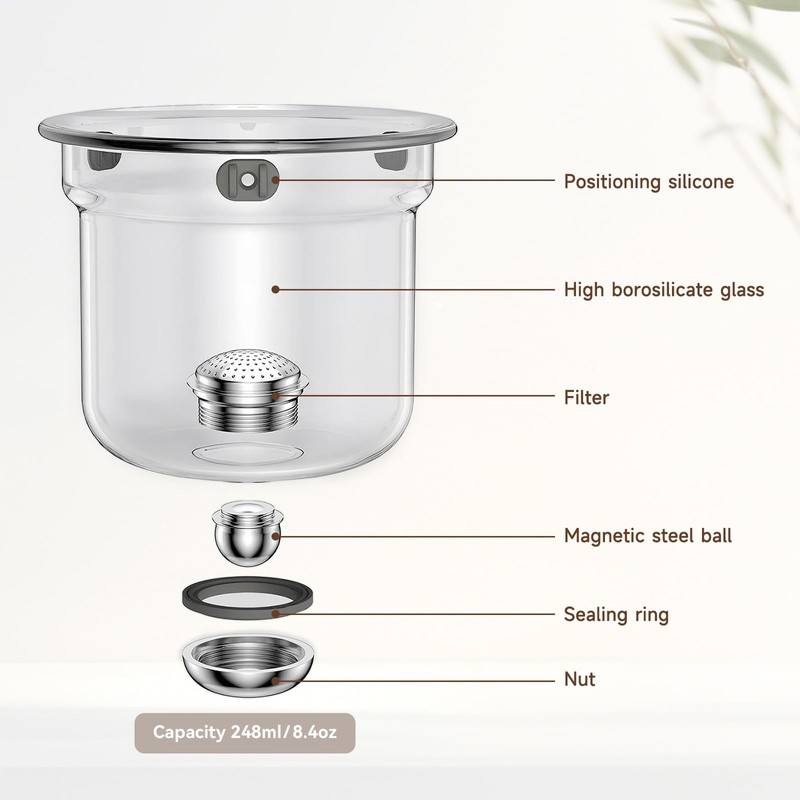- Innovative separation technology: Easily filter your tea or other brews with just the touch of a button