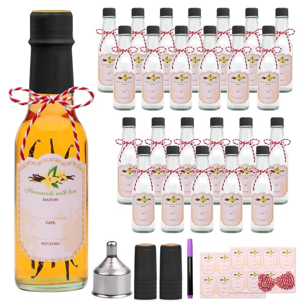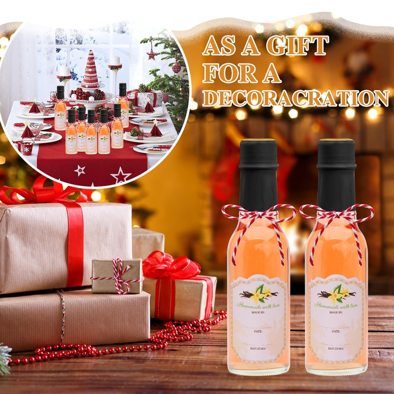 - Complete Set for Easy Bottling-Each set includes screw-on lids and plastic inserts with shrink capsules to prevent leaks for a secure seal,and labels for easy customization.The included pen allows you to write personal notes or product details on the labels.A stainless steel funnel ensures easy filling without spills,while red jute twine adds a rustic touch for gifting or selling.This set is perfect for anyone looking to bottle their creations with ease and style.