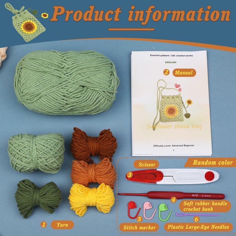 - Easy to Make: Our sunflower phone bag crochet kit is suitable for people of all ages to make. You can crochet a beautiful phone bag according to the instructions and step-by-step video tutorials. The video tutorial is very detailed, and even if you are a beginner in crochet, you can easily master crochet skills and complete your work.