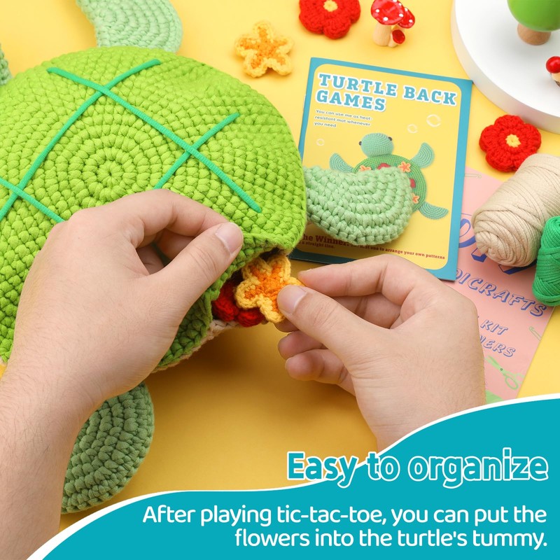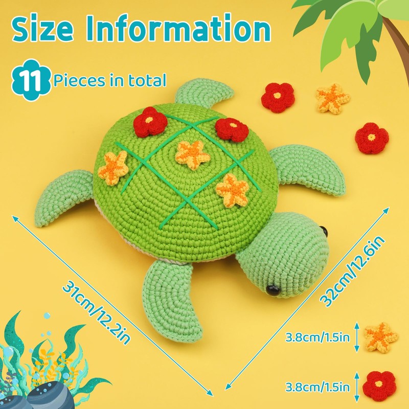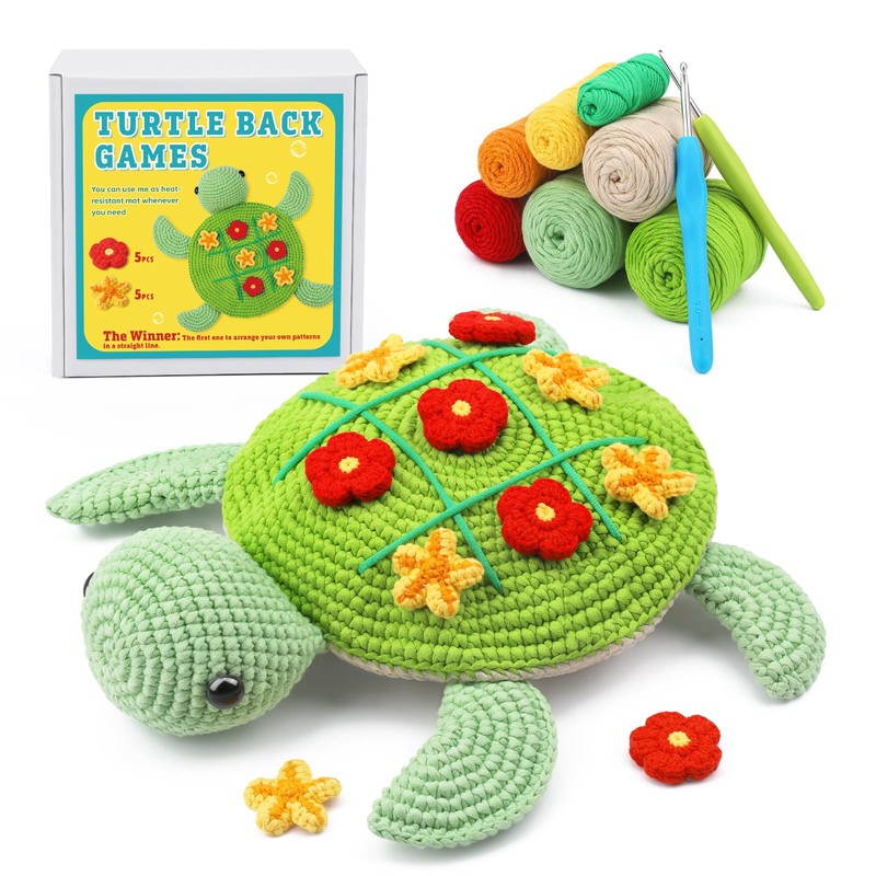 - Cute Turtle Crochet Kit: Our turtle crochet kit for beginners is very cute and fun, you can play tic-tac-toe on the turtle's back with your family and friends, or put it on your desk, bedside table, or hang it on the wall as a wall decoration. Our beginner turtle crochet kit can also be a present for family and friends