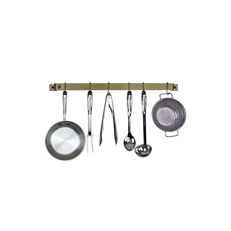 Enclume Handcrafted 30" Easy Mount, 6 Hooks, Brass Wall Rack