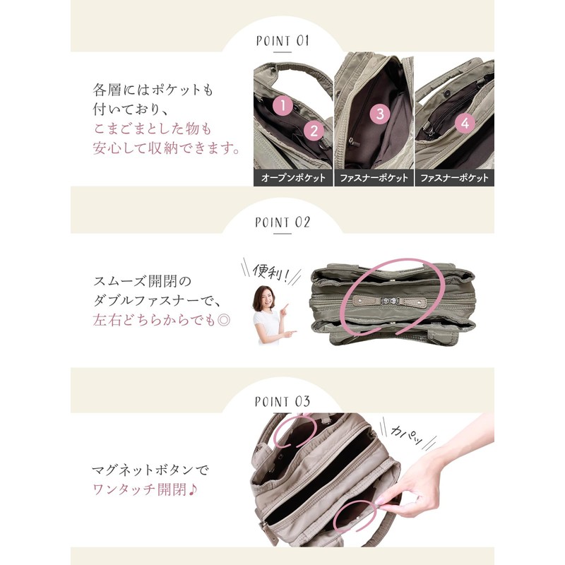 - Convenient Shoulder Belt: When shopping with a lot of luggage, the special nylon shoulder strap can be used as a shoulder bag. The simple design is balanced even when worn diagonally, so it can accommodate a wide range of styles. The D-ring for the belt is installed in 4 locations, so it can be used on both shoulders. Shoulder Strap Length: Approx. 26.4 - 47.2 inches (67 - 120 cm)
