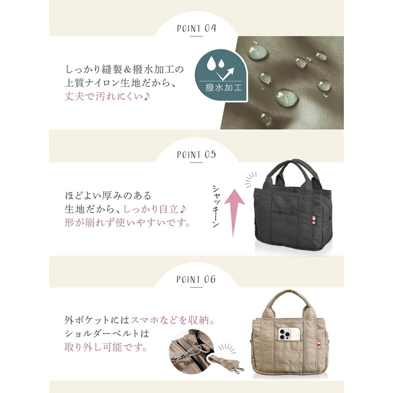 Encore Women's Mini Tote, High Visibility Mini Tote, Tote Bag, Small, 2-Way Shoulder Bag, Lightweight, Functional, Easy to Use, Lunch Bag, Work Bag, Mother's Bag, Handbag, Nylon, smoky pink