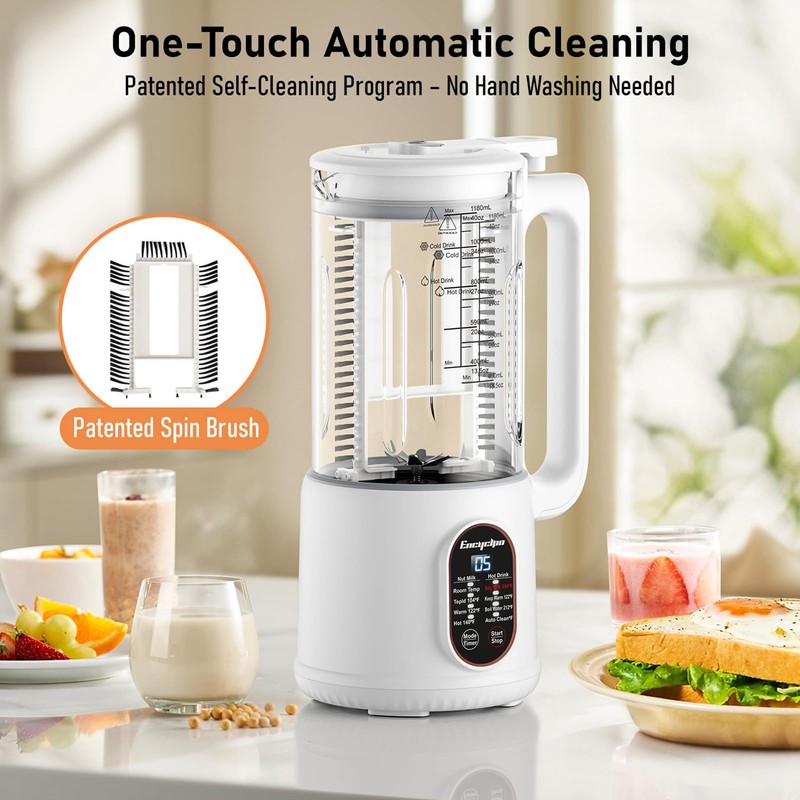 Encyclpo 40oz Nut Milk Maker - Automatic Soy Milk Maker with Spin Clean Brush & Nut Milk Bag - Homemade Almond, Oat, Coconut, Soy Milk - Auto Clean, Boil Water, Delay Start, Keep Warm