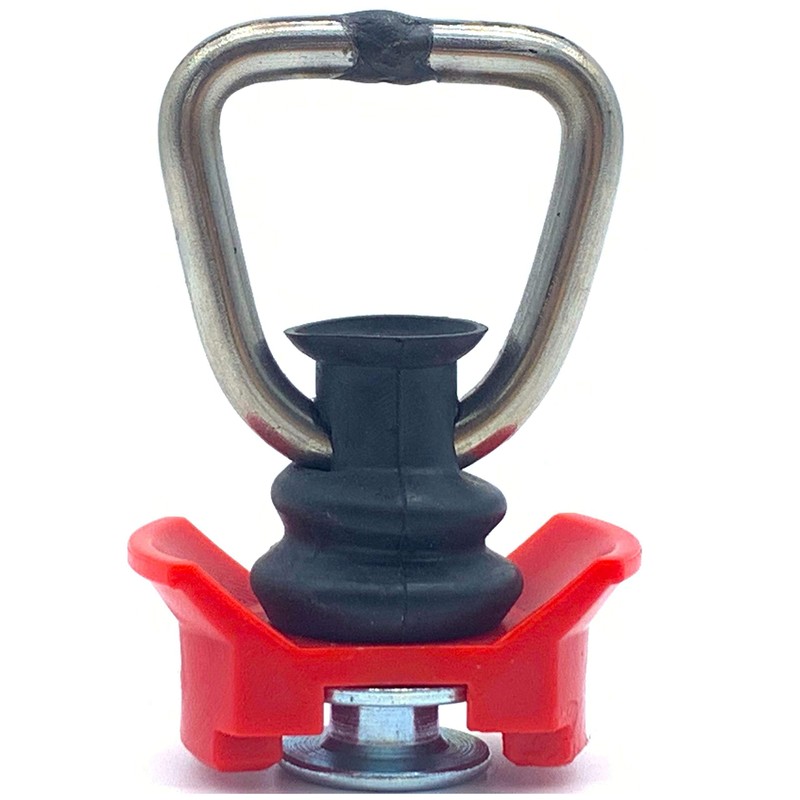 Application: for securing loads in vehicles such as vans with standard airline rails, fitting is inserted into the airline rail and the lashing straps are simply hooked and tensioned in the ring/trapezoid.