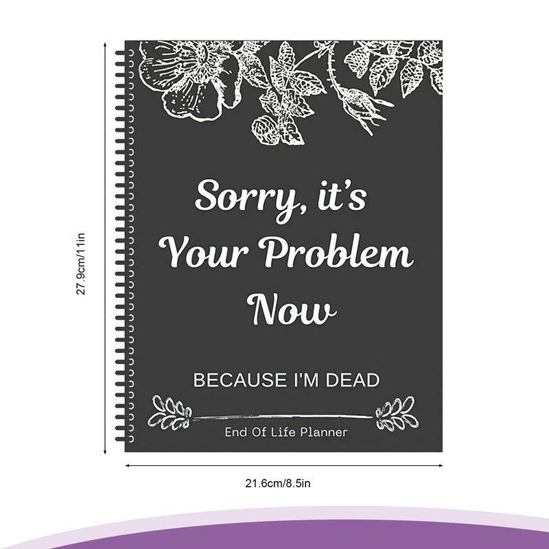 - 🖊️Humorous and Practical: The 'Sorry, It's Your Problem Now, Because I'm Dead' end of life planner combines humor with practicality, helping you organize your final arrangements with a light-hearted touch.