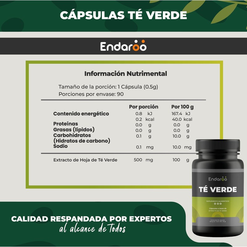 ENDAROO Té Verde, 90 Cápsulas, Suplemento Natural para Energía y Control de Peso