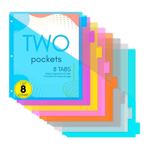 Enday Dividers with Pockets for 3 Ring Binder, 8 Subject Dividers, Plastic Multicolor 8 Pack with Tabs and Pockets
