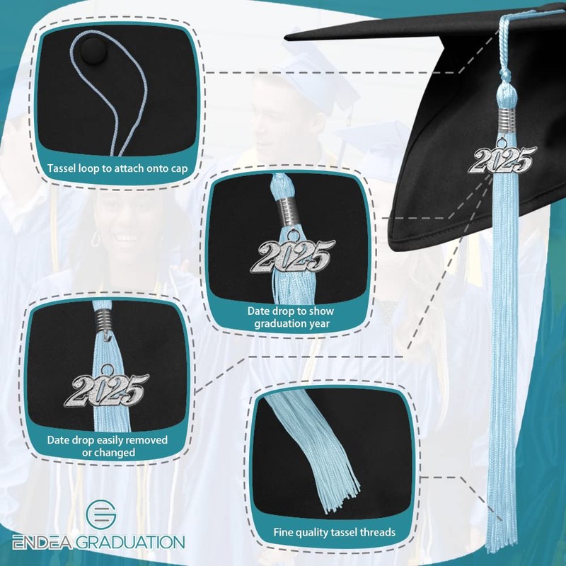 Endea Graduation Single Color Tassel with Silver Date Drop (Light Blue, 2025)
