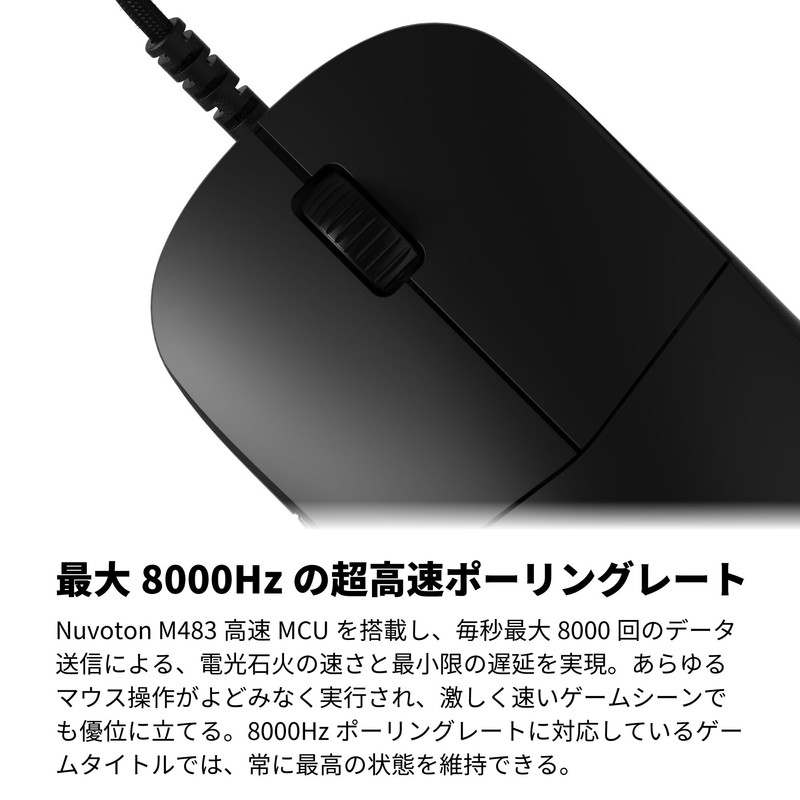 - Equipped with Nuvoton M483 high-speed MCU, it delivers extremely fast response and very little delay due to 8000 times per second. All mouse operations are performed well and will dominate even the most intense and fast game scenes. With the game titles that support 8000Hz polling rate, you can always keep it in good condition. Press and hold the "mode" button on the back of the mouse to change between 8,000 Hz, 4,000 Hz, 2,000 Hz