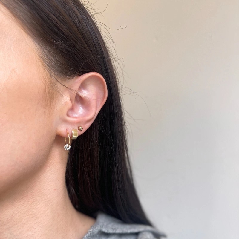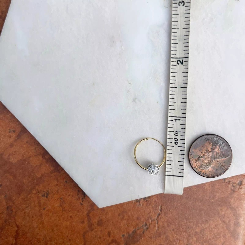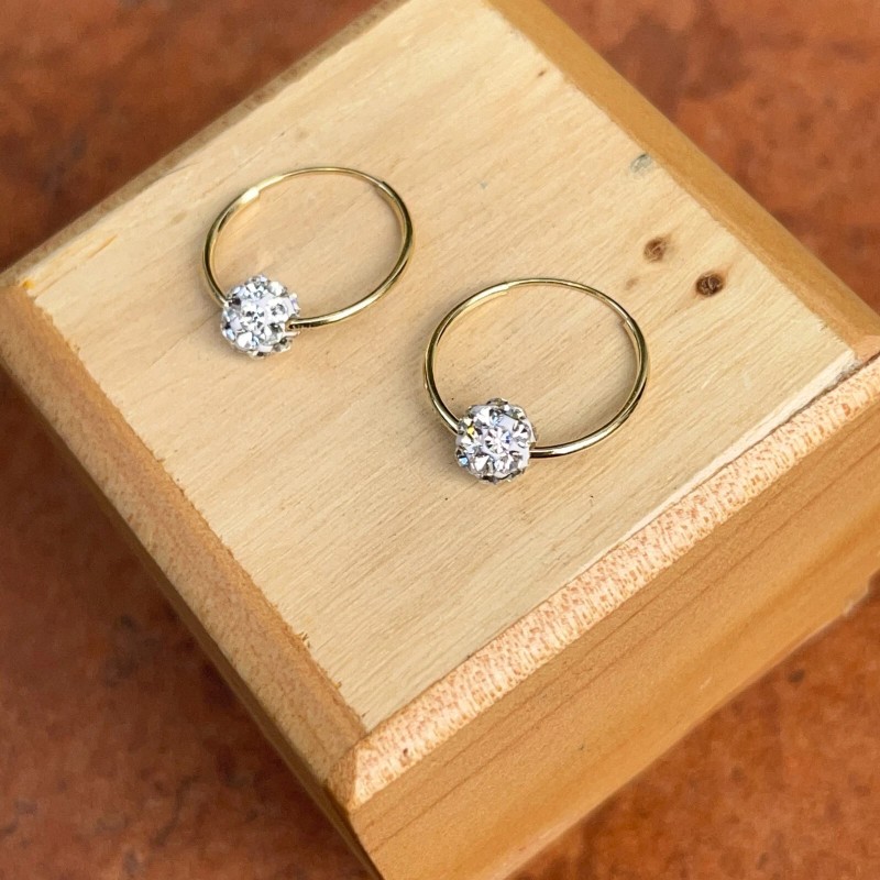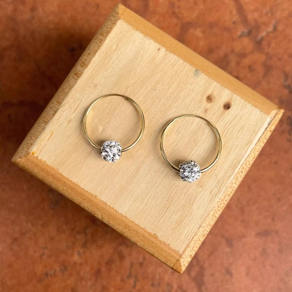 Endless 14KT Yellow Gold Thin Crystal Bead Ball Charm Endless Hoop Earrings 13mm SMALL
