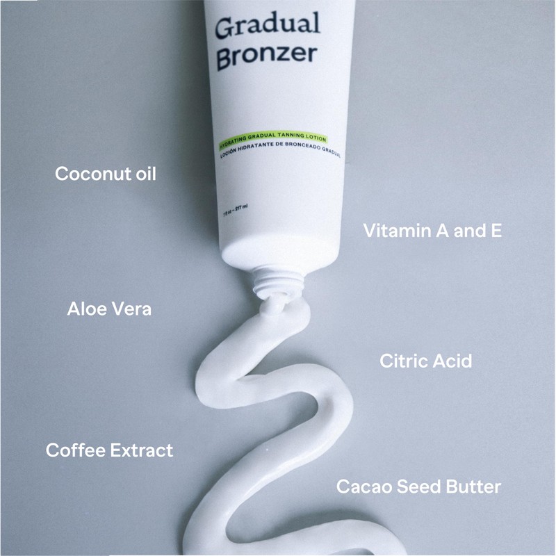- 2 En 1 - Nuestro Gradual Bronzer Es Un Autobronceador Y Crema Hidratante Para Tu Cuerpo Y Tu Cara. Házlo Parte De Tu Rutina De Skincare y Logra Un Tono De Bronceado Increíble En Todo Tu Cuerpo