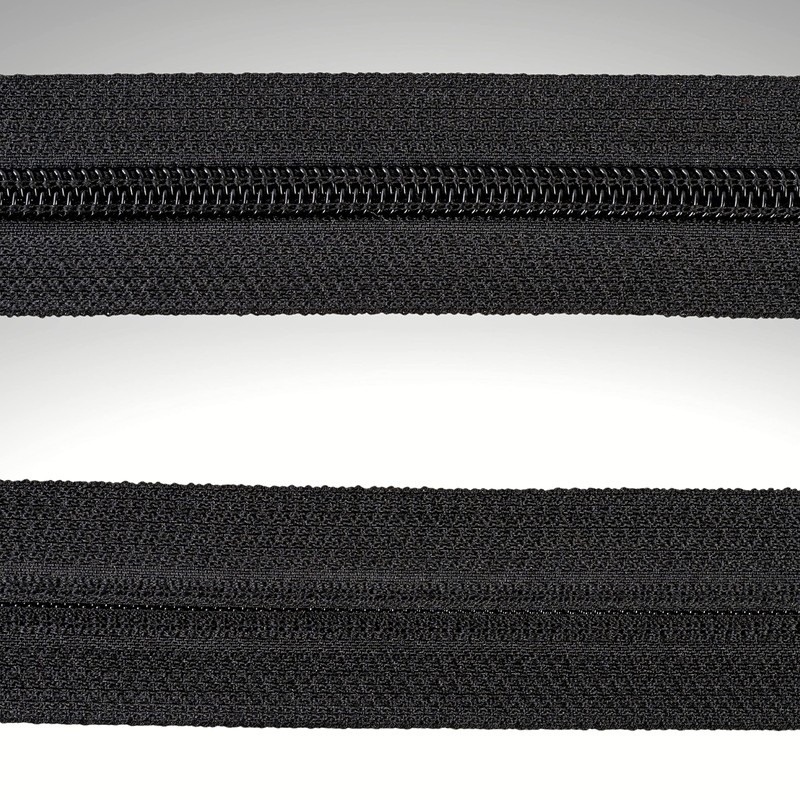 Endless zip, 330 cm total length, including 15 x narrow zip zips, size #5, black, not separable, rail width 2.8 - 3.2 cm, tooth width 6 - 6.5 mm, zip zip, replacement zip endless black.