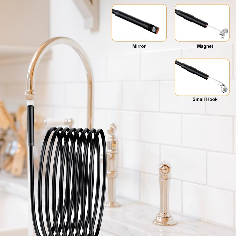 - Snake inspection camera: you will receive one endoscope camera, one 2 m cable, accessories: one magnet, one hook, one mirror, one protective cap, one instruction manual (English language not guaranteed). What this endoscope camera is suitable for various applications such as the maintenance of motor vehicles, underwater cameras, sewer pipe detectors, home care, care and tractor industry and so on.