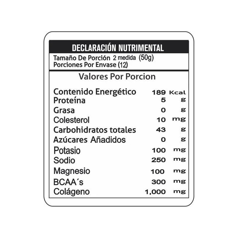 Información Nutricional por porción (2 scoops = 50 g) - Rinde 12 porciones: