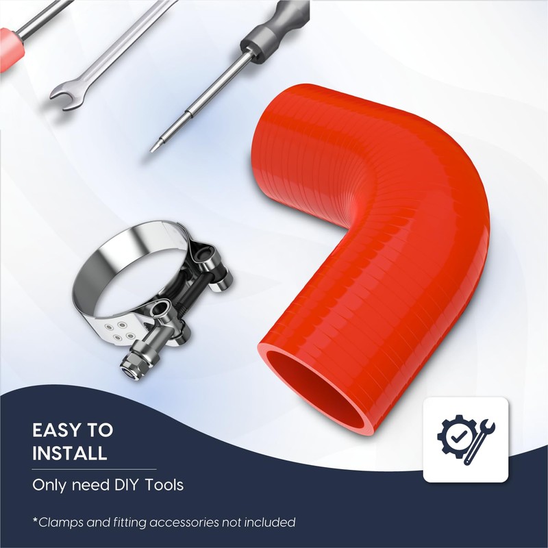 - Compatibilidad versátil: diseñada para vehículos de alto rendimiento, esta manguera de silicona de 90 grados se adapta a tuberías de admisión de 57 mm. Ideal para configuraciones personalizadas, soporta calor y presión extremos, asegurando un rendimiento fiable para turbocompresores, sobrecargadores y actualizaciones del motor.