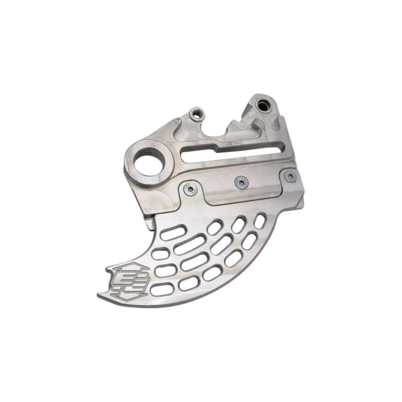 Protect your expensive rear brake rotor with this disc guard. Replaces the entire brake carrier for superior strength and features a replaceable fin. For models Sherco all models with WP forks and KYB forks